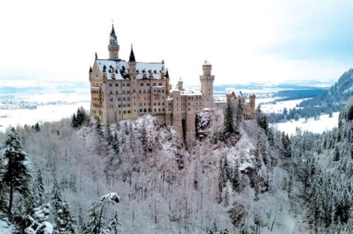 Vào mùa đông, lâu đài có vẻ đẹp thật riêng biệt, bốn bề là tuyết trắng xóa, ở trong một khe núi yên tĩnh, những hôm trời trong xanh, lâu đài đứng sừng sững trên một đỉnh núi tuyết, lạnh đến tê người, giống như lâu đài trong những câu chuyện cổ tích. Đây đúng là chốn tiên cảnh giữa nhân gian, cách biệt với sự đông đúc ồn ào của cuộc sống.