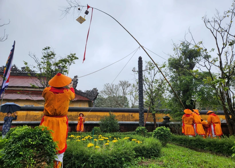 Lễ hạ cây nêu tại Khu di sản Hoàng Cung Huế. Ảnh: Tường Vi - TTXVN