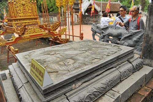 | Du khách nước ngoài chiêm ngưỡng Long sàng - Bảo vật quốc gia. Ảnh: Minh Đức - TTXVN |