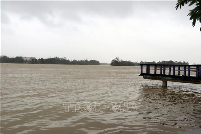 Mực nước lũ trên sông Hương dần đạt mức báo động 2. Ảnh: Đỗ Trưởng - TTXVN