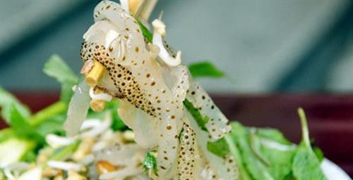 Và thế là, vị mặn mòi của biển, vị cay của ớt, vị chát chầm của vả, của chuối xanh cộng với hương thơm nồng nàn của rau thơm, rau húng. Cái ngon của món sứa chính là sự kết hợp khéo léo này để cho vị của con sứa bớt mặn, bớt tanh nồng, để mâm cơm dù nghèo nhưng mẹ già vẫn luôn tay bên nồi cơm nghi ngút khói...
