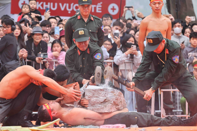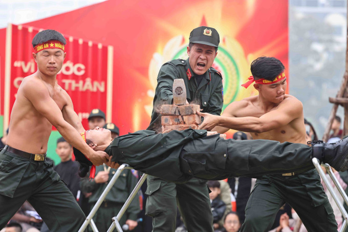 Màn biểu diễn khí công của các chiến sĩ Bộ Tư lệnh Cảnh sát cơ động. Ảnh: Minh Đức – TTXVN
