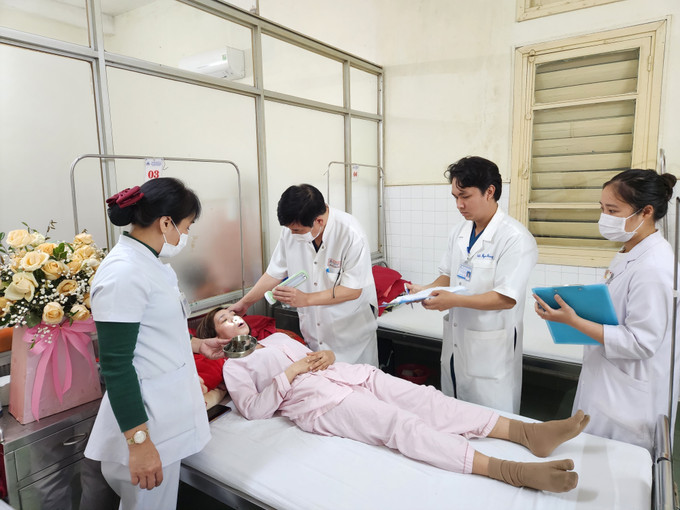 Kiểm tra tình trạng sức khỏe bệnh nhân sau phẫu thuật. Ảnh: Mai Trang – TTXVN