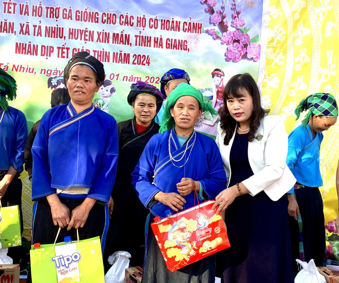 Phó Chánh thanh tra tỉnh Trần Thu Hà và lãnh đạo Công ty Cổ phần Dinh dưỡng Hải Thịnh FEED-FARM-FOOD động viên bà con nhân dân xã Tả Nhìu tiếp tục nỗ lực vượt qua khó khăn, đẩy mạnh phát triển kinh tế, quan tâm hơn nữa tới các hộ nghèo và học sinh, đảm bảo các hộ có hoàn cảnh khó khăn đều có Tết và đón Tết vui tươi, đầy đủ.
