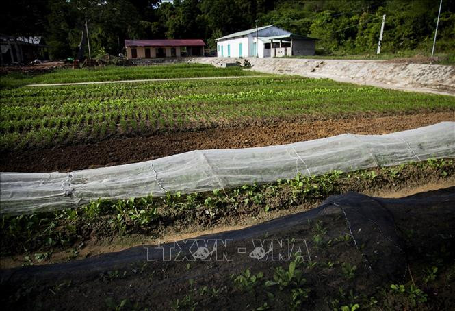 Khu trồng rau ăn lá và rau gia vị trong Khu tăng gia tập trung. Ảnh: Hồng Đạt - TTXVN