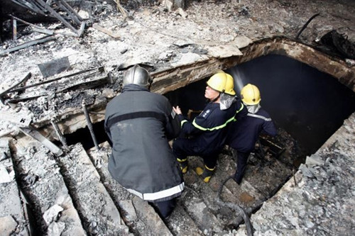 Lính cứu hỏa xịt nước dập tắt đám cháy.