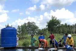 Chiều 6/4, tại xã An Khánh, huyện Châu Thành, tỉnh Bến Tre, Trung tâm Quy hoạch và Điều tra tài nguyên (Bộ Tài nguyên và Môi trường) đã bàn giao cho UBND tỉnh Bến Tre điểm cung cấp nước ngọt miễn phí cho nhân dân chống hạn, mặn trong mùa khô năm 2020.