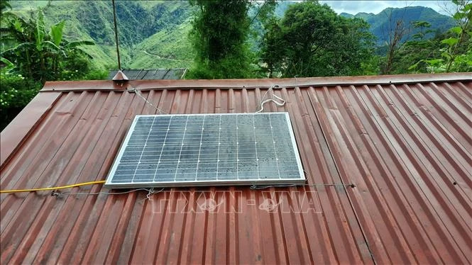 Một hộ dân ở bản Tà Dông, xã Cao Phạ (Mù Cang Chải, Yên Bái) được lắp đặt hệ thống chiếu sáng sử dụng năng lượng mặt trời. Ảnh: Việt Dũng - TTXVN