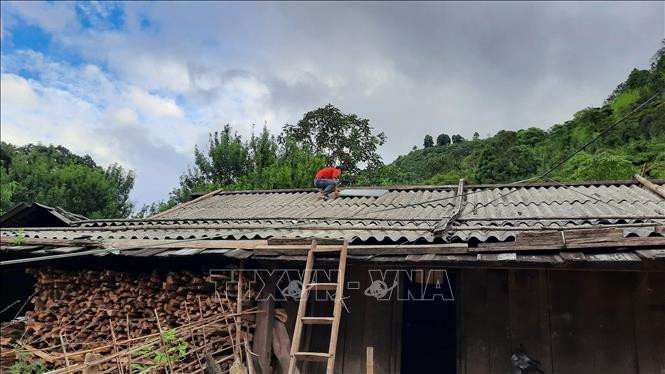 Lắp đặt hệ thống chiếu sáng sử dụng năng lượng mặt trời cho một hộ dân ở bản Tà Dông, xã Cao Phạ, huyện Mù Cang Chải, tỉnh Yên Bái. Ảnh: Việt Dũng - TTXVN