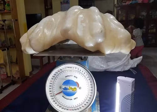 Cho tới khi, một vụ hỏa hoạn tại nhà riêng hồi đầu năm khiến ông phải chuyển chỗ ở và đưa khối ngọc trai tới phòng du lịch địa phương ở Puerto Princesca. Tại đây, các nhân viên ở phòng du lịch xác nhận đây là sản phẩm của một con trai cực lớn, có thể có giá trị tới 100 triệu USD. Khối ngọc trai có bề ngang 0,3 mét, dài 0,7 mét, lớn gấp 5 lần viên ngọc trai Allah đang giữ kỷ lục thế giới với trọng lượng 6,4 kg và trị giá 35 triệu USD, được tìm thấy ở Palawan, Philippines, vào năm 1934. Hiện khối ngọc trai này đang chờ để được công nhận là khối ngọc trai lớn nhất thế giới.