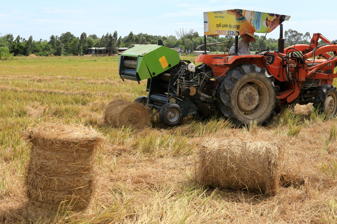 Rơm vừa thu hoạch giữ sạch đem ủ với urê làm thức ăn dự trữ cho gia súc là tốt nhất. Ảnh: Hồ Cầu