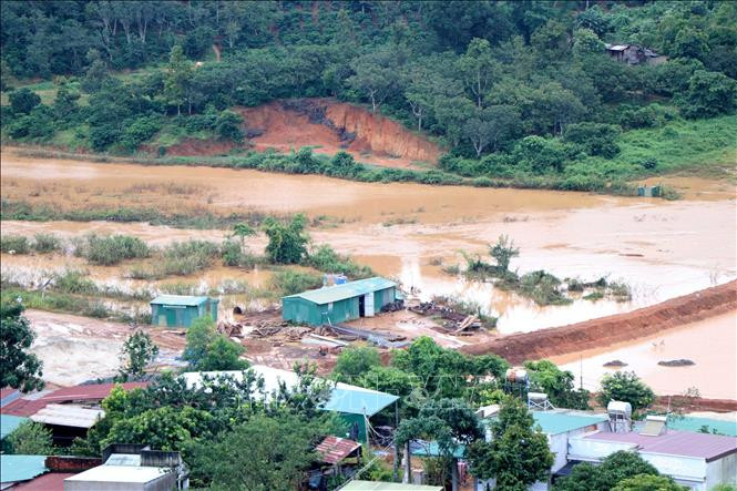 Mưa lũ gây sạt lở tại xã Quảng Thành, thành phố Gia Nghĩa, tỉnh Đắk Nông. Ảnh: Hưng Thịnh – TTXVN
