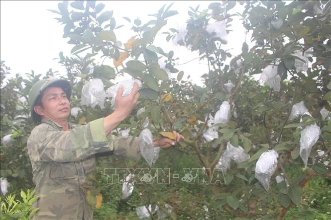 Với mức giá 12 - 15 nghìn đồng/kg, sau khi trừ chi phí, mỗi năm gia đình anh Bùi Anh Kiều, xã Thành Tâm, huyện Thạch Thành thu về khoảng 1,5 tỷ đồng từ cây ổi. Ảnh: Hoa Mai – TTXVN