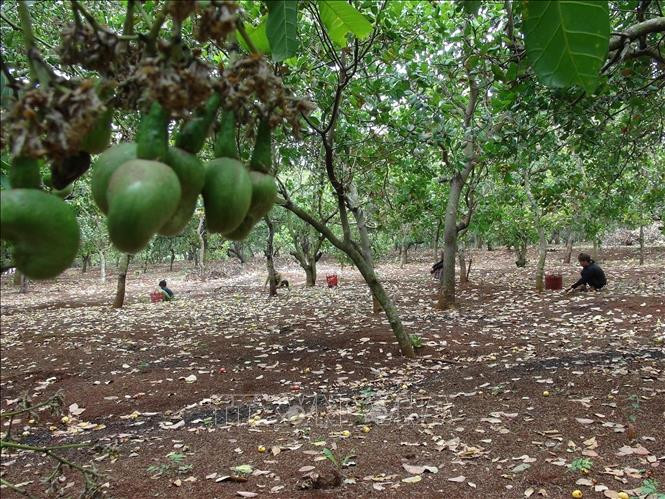 Người dân thu hoạch hạt điều tươi tại xã Đức Hạnh, huyện Bù Gia Mập. Ảnh: K GỬIH-TTXVN