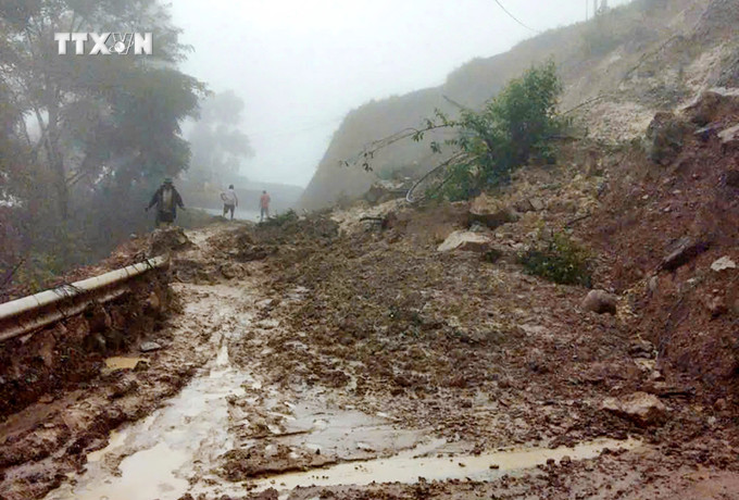 Do ảnh hưởng của bão số 3, nhiều giờ qua, tại Điện Biên xảy ra mưa to khiến nhiều tuyến quốc lộ, tỉnh lộ bị hư hỏng, sạt lở ta luy làm đất đá tràn xuống lòng đường, giao thông ách tắc cục bộ.