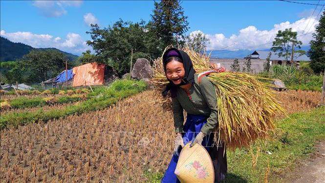 Niềm vui được mùa của người dân xã Tả Sử Choóng, huyện Hoàng Su Phì (Hà Giang). Ảnh: Nguyễn Chiến-TTXVN