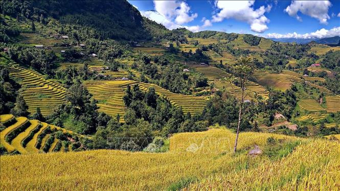 Ruộng bậc thang mùa lúa chín ở Tả Sử Choóng, huyện Hoàng Su Phì (Hà Giang). Ảnh: Nguyễn Chiến-TTXVN