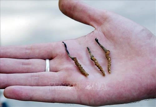 | Nấm yarchagumba tại Kathmandu, Nepal. Ảnh: AFP/ TTXVN |