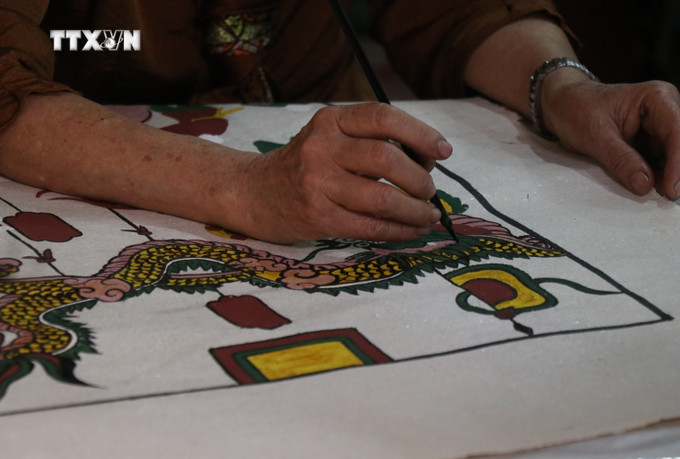 “Cùng với những bức tranh truyền thống, năm 2024, gia đình tôi sáng tạo thêm bức tranh rước rồng và tranh rồng sao cho phù hợp với cuộc sống đương đại. Theo đó, bên cạnh thể hiện không khí vui tươi với nhiều hoạt động phong phú, đa dạng của con người, con rồng chuyển động theo tư thế cuộn mình từ trên xuống nhưng đầu ngóc lên thể hiện sự vươn mình, phát triển, ước vọng vào khí thế mới, bước tiến mới”, nghệ nhân Nguyễn Thị Oanh chia sẻ.