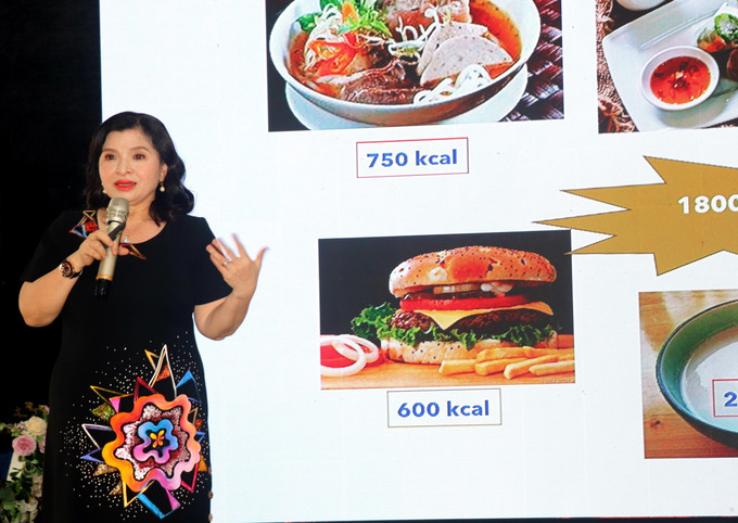 Bác sĩ Đỗ Thị Ngọc Diệp, Phó Chủ tịch Hội dinh dưỡng Việt Nam, chia sẻ những thông tin về cân bằng dinh dưỡng, cách lựa chọn thực phẩm và khẩu phần thích hợp cho phụ nữ nông thôn. Ảnh: Thu Hiền - TTXVN