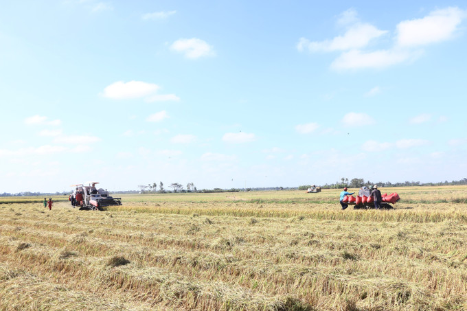 Cơ giới hóa được rộng khắp giúp cho việc sản xuất, thu hoạch của đồng bào Khmer ngày càng hiệu quả. Ảnh: Chanh Đa-TTXVN