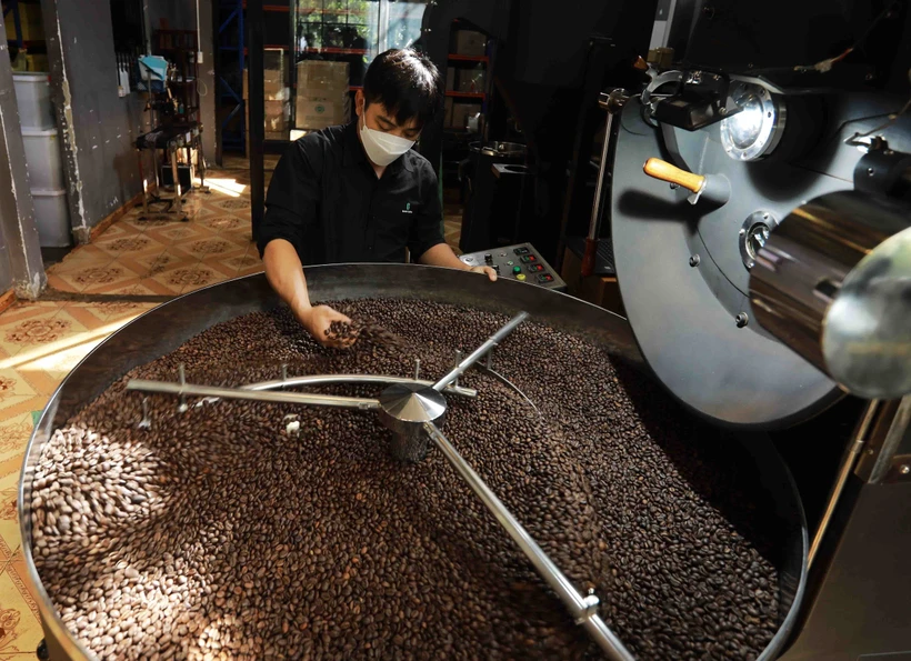 Công ty TNHH MTV cà phê BaZan ở thành phố Gia Nghĩa, tỉnh Đắk Nông, mỗi năm cung cấp 60 tấn cà phê thành phẩm phục vụ thị trường trong nước và xuất khẩu sang Italia và các nước khác ở châu Âu. Ảnh: Vũ Sinh – TTXVN