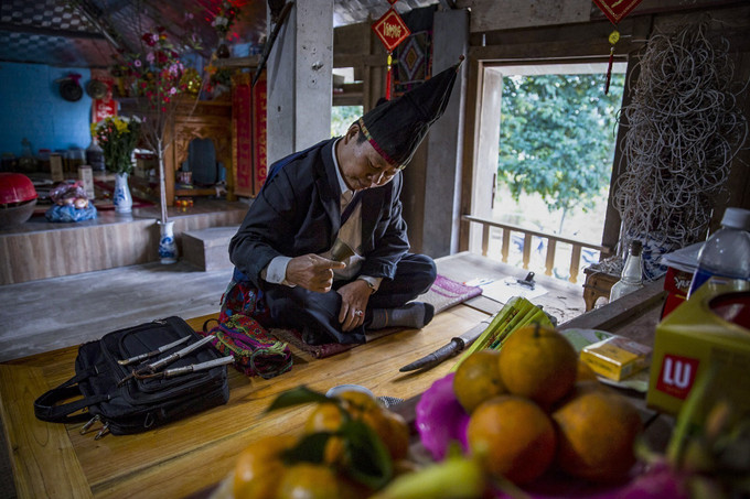 Thầy mo Bùi Văn Minh ở xóm Mận Bùi, xã Văn Sơn (Lạc Sơn) cho biết, bàn thờ của người Mường được lập ở gian chính của nhà sàn truyền thống hoặc gian khách ở những ngôi nhà hiện đại. Trong nghi lễ cúng gia tiên, thầy cúng dùng tràng hương thực hiện nghi thức mời gia tiên của gia chủ ở những nơi được chôn cất. Tục lệ này của người Mường là mời đích danh tổ tiên chứ không mời chung chung như các dân tộc khác. Đồng thời, mỗi đời tổ tiên được sắp xếp một mâm thờ riêng khiến cho người Mường phải sắp xếp nhiều mâm cúng. Ví như mâm thờ ông, bà nội đã khuất, người Mường sắp mâm riêng, đặt lên đó 2 bát cơm, 2 bánh chưng, bánh ống, 2 đôi đũa cùng thực phẩm. Trong quá trình hành lễ, thầy cúng mời thổ công, thành hoàng làng rồi lần lượt đến các vị tổ tiên từ đời cao nhất đến đời gần nhất (ít nhất là 3 đời gồm cả chồng và vợ) về nhà ăn Tết. Sau khi mời tổ tiên về và khấn lễ xong, thầy cúng lại mời tổ tiên về đúng nơi an nghỉ. Sau 10 tuần hương, con cháu mới được xin hạ lễ. Điều này có ý nghĩa giáo dục sâu sắc cho các con cháu trong nhà, dòng họ, nhắc nhở con cháu nhớ về cội nguồn, về nơi chôn cất của tổ tiên.