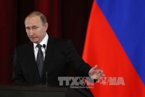 Tổng thống Nga Vladimir Putin phát biểu trong một cuộc họp ở thủ đô Moskva ngày 15/3. Ảnh: AFP/TTXVN