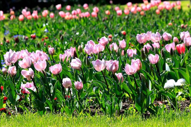 Hàng chục loại hoa tuy luýp tại vườn thực vật Nikitin trên bán đảo Crimea khoe sắc khi mùa xuân về. Ảnh: Duy Trinh - PV TTXVN tại Nga