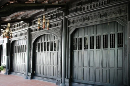 | Các cánh cửa làm bằng gỗ quý, hoa văn được điêu khắc tinh xảo tạo thêm nét cổ kính cho mặt tiền của căn nhà - Ảnh : Ngọc Tiến. |