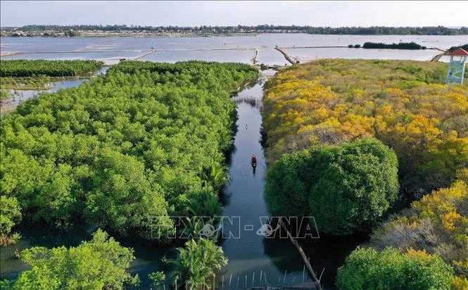 Rừng ngập mặn nguyên sinh Rú Chá thuộc xã Hương Phong, thị xã Hương Trà, tỉnh Thừa Thiên - Huế có diện tích khoảng 5ha, có chức năng ngăn mặn, bảo vệ nguồn lợi thủy sản và đất liền. Rú Chá hiện đã được tỉnh Thừa Thiên-Huế quy hoạch mở rộng diện tích lên 20 ha nhằm góp phần giảm thiểu ảnh hưởng của biến đổi khí hậu và phát triển mô hình du lịch sinh thái trên vùng đầm phá Tam Giang. Ảnh: Hồ Cầu - TTXVN