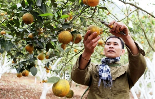 | Nguồn vốn ưu đãi được nhiều đoàn viên, thanh niên ở các huyện miền núi phía Tây Nghệ An sử dụng vào phát triển kinh tế trang trại, trồng cam, chanh, chuối. Trong ảnh: anh Phan Hoàng Đồng ở xã Bồng Khê, huyện Con Cuông vay vốn trồng cam Vinh mang lại hiệu quả kinh tế cao |
