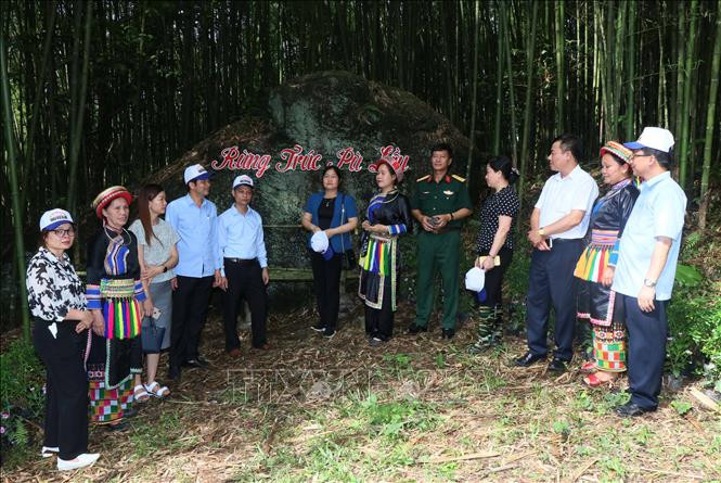 Khách tham quan rừng trúc tại thôn Phiêng Phàng, xã Yến Dương, huyện Ba Bể. Ảnh TTXVN phát