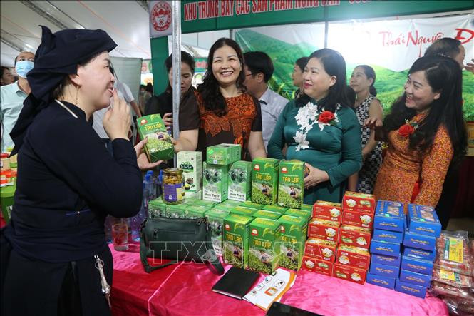 Khách tham quan gian hàng OCOP tại Ngày hội nông sản – OCOP tỉnh Bắc Kạn năm 2022. Ảnh TTXVN phát