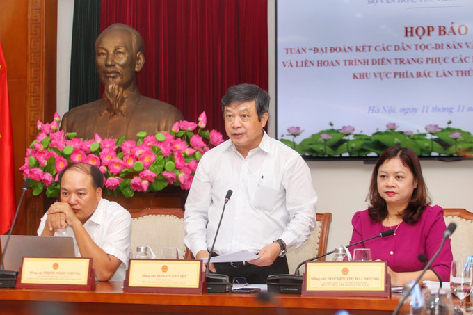 Sáng 11/11, tại Hà Nội, Bộ Văn hóa, Thể thao và Du lịch họp báo, thông tin về Tuần Đại đoàn kết các dân tộc - Di sản văn hóa Việt Nam và Liên hoan trình diễn trang phục các dân tộc thiểu số Việt Nam khu vực phía Bắc lần thứ nhất, năm 2022.