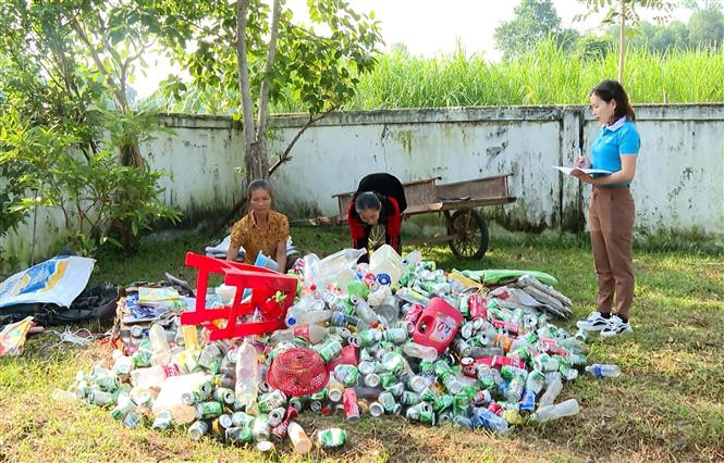 Mô hình biến phế liệu thành con giống của Câu lạc bộ phụ nữ với pháp luật thôn Thuỷ Sơn đã giúp hàng chục phụ nữ có thêm sinh kế. Ảnh: Văn Tý - TTXVN