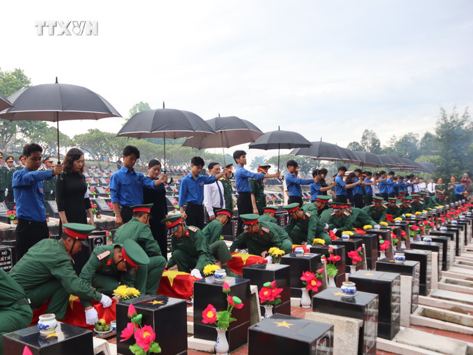 Ngày 26/7, tại Nghĩa trang liệt sỹ tỉnh, Đảng bộ, chính quyền, lực lượng vũ trang và nhân dân tỉnh Bình Phước tổ chức lễ viếng, truy điệu, an táng 106 hài cốt liệt sỹ và dâng hương tưởng niệm anh linh các Anh hùng liệt sỹ, nhân kỷ niệm 77 năm Ngày Thương binh - Liệt sỹ ( 27/7/1947 - 27/7/2024).
