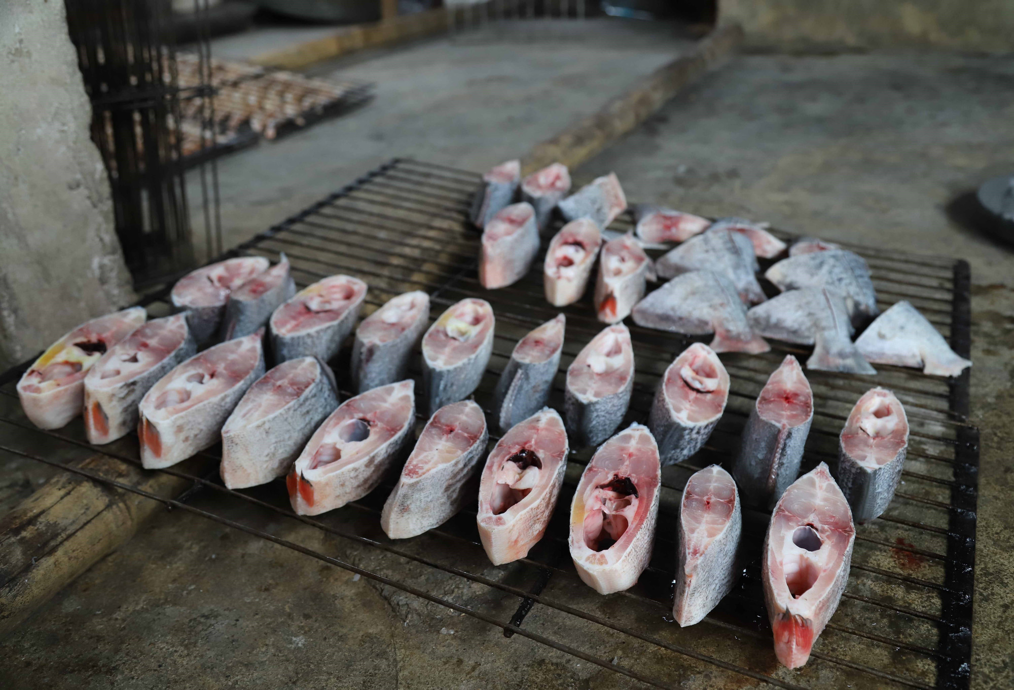 Cùng với đó, các chủ lò cũng thuê thêm nhân công lao động trong xã để thực hiện các quy trình phân loại, sơ chế cá, găm cá, xếp cá lên rả nướng, nướng cá... Vào các ngày thường trong năm, lượng cá biển mà các cơ sở sơ chế, nướng chín trung bình đạt từ 200-300 kg cá biển các loại. Vào giai đoạn giáp Tết, lượng cá biển mà các lò nướng sơ chế, nướng chín đạt từ 500-600 kg/ngày.