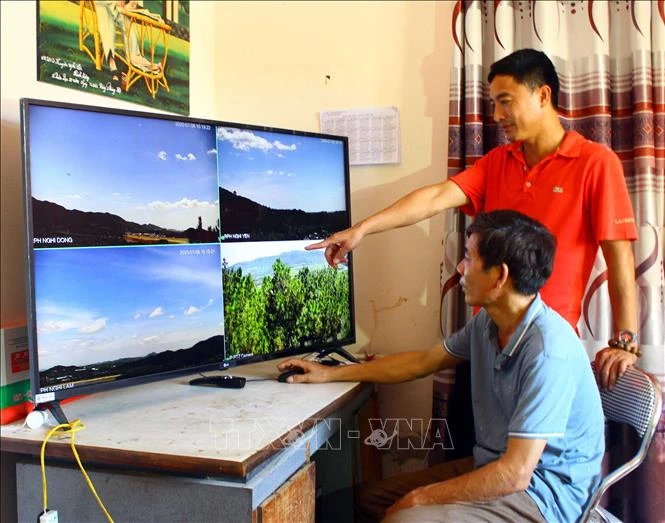 Từ hình ảnh của các camera, Ban Quản lý rừng phòng hộ Nghi Lộc đã phát hiện sớm và kịp thời dập tắt được 5 điểm có khói lửa, nguy cơ gây cháy rừng. Ảnh: Tá Chuyên - TTXVN