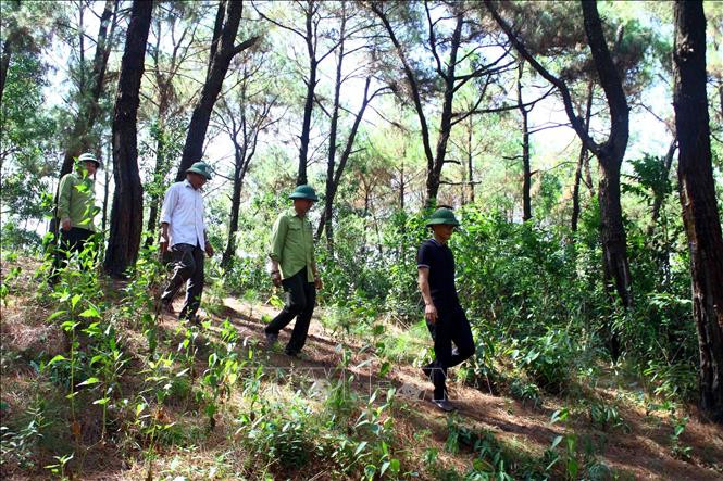 Cán bộ Đội lâm nghiệp Nghi Đồng cùng Ban Quản lý rừng phòng hộ Nghi Lộc thường xuyên tuần tra bảo vệ rừng. Ảnh: Tá Chuyên - TTXVN