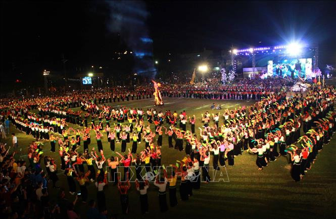 Màn đại xòe tại Lễ khai mạc Tuần Văn hóa – Du lịch Mường Lò và Lễ hội Khám phá Danh thắng quốc gia ruộng bậc thang Mù Cang Chải năm 2017 (Nghĩa Lộ, Yên Bái). Ảnh: Thế Duyệt – TTXVN