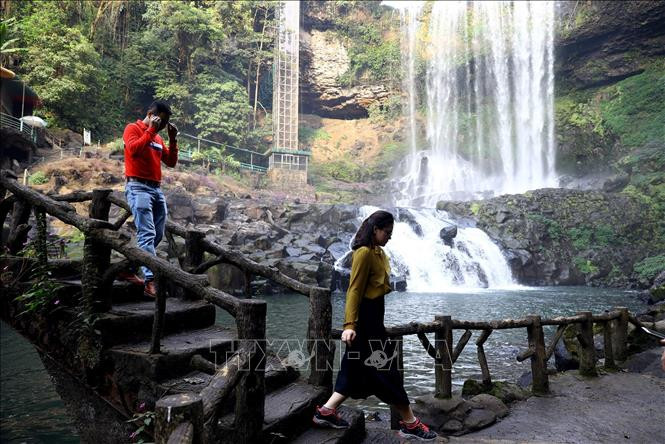 Nhiều du khách lựa chọn thác là điểm đến đầu tiên cho hành trình khám phá cao nguyên Lâm Viên. Ảnh: Huy Hùng - TTXVN