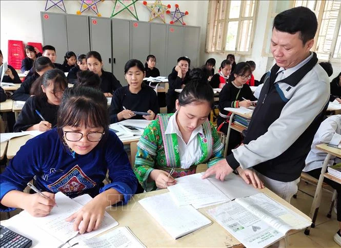 Một tiết học của học sinh Trường Trung học phổ thông Dân tộc nội trú Cao Bằng. Ảnh: Quốc Đạt - TTXVN