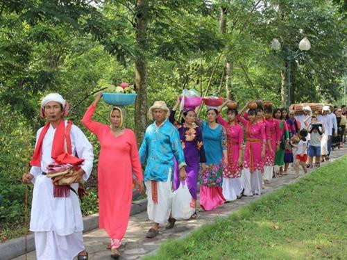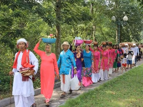 | Người Chăm mang lễ vật vào tháp cúng thần linh. |