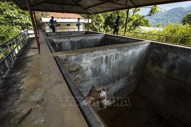 Các hạng mục của công trình nước sạch này như: bể chứa, bể lắng, bể lọc nước và nhà điều hành vẫn còn nguyên vẹn. Ảnh: Trọng Đạt