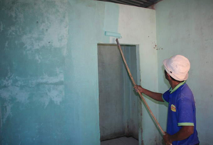 Ngôi nhà của gia đình ông Cao Quốc Cửu (thôn Tà Nĩa, xã Sơn Trung) cũng đang được tổ thợ lăn sơn mới. Ông Cửu tâm sự: “Từ ngày nhận thông báo được hỗ trợ sửa chữa nhà, vợ chồng tôi mừng lắm. Với số tiền 30 triệu đồng, tôi thuê thợ sửa lại mái nhà, thay hệ thống cửa, lăn sơn mới để chuẩn bị đón Tết. Tết này, mua thêm bộ bàn ghế mới để vào nhà mới là đẹp hẳn luôn”.