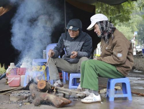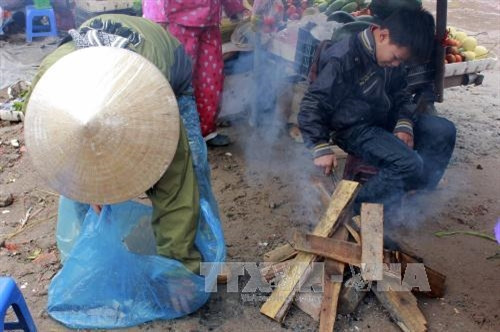 Nhiều người bán hàng phải đốt lửa để sưởi ấm. Ảnh: Phạm Thảo – TTXVN phát.
