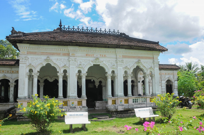 Nhà cổ của gia đình ông Trần Tuấn Kiệt (ấp Phú Hòa) xây dựng vào năm 1838 trên diện tích 1.000m2, gồm 5 gian với kiến trúc kiểu chữ Đinh; trên các vì kèo, ô cửa… bằng gỗ có chạm khắc tinh xảo các hoa văn như tùng, cúc, trúc, mai… và nhiều họa tiết đặc trưng văn hóa Nam bộ. Trong nhà còn lưu giữ nhiều đồ cổ quý như bộ liễn đối khảm xà cừ, bộ bàn ghế với các hoa văn tinh tế, vật dụng bằng sứ; đặc biệt là 108 cây cột bằng gỗ căm xe quý hiếm. Ngôi nhà đã được các nhà khảo cổ Nhật Bản xếp vào loại “Cửu đại mỹ gia” (9 ngôi nhà đẹp nhất) ở Việt Nam; được Cơ quan Hợp tác quốc tế Nhật Bản (JICA) và Trường Đại học Kiến trúc Nữ chiêu hoàng (Nhật Bản) đầu tư kỹ thuật và tài chính để trùng tu vào năm 2002.