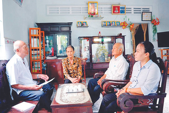Thầy Lâm Es đến thăm một hộ gia đình dân tộc Khmer hiếu học ở xã Thạnh Phú, huyện Mỹ Xuyên (Sóc Trăng). Ảnh: An Hiếu