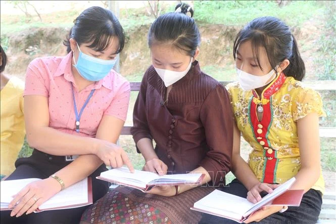 Giờ lên lớp của cô Lê Thị Hạnh. Ảnh: Bích Huệ - TTXVN